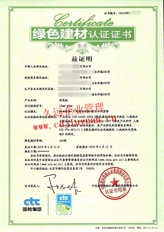 綠色建材認(rèn)證證書